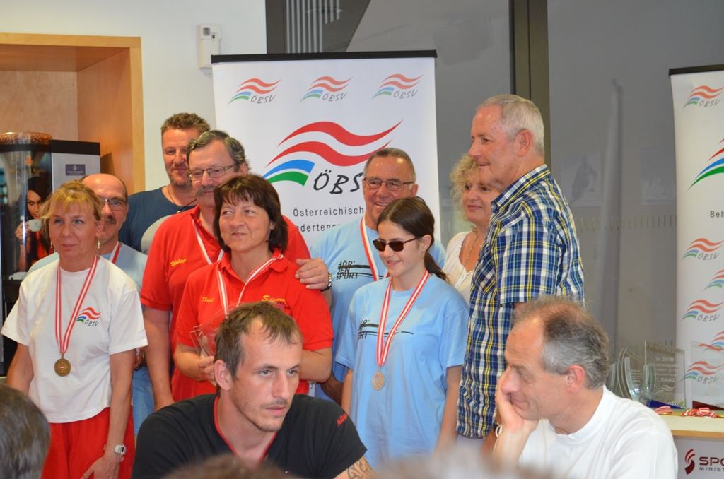 Erstmals am Start war die junge Sportschützin Anna-Sophie Thöni mit Begleitsportler Sigi Öhre vom Blindensportclub Vorarlberg. Bei Ihrem ersten Antreten schlug sie sich beachtlich, wurde gar Zweite im Bewerb stehend aufgelegt. Wäre ihr nicht ein Anfängerfehler unterlaufen (in der 3 Serie landete 1 Schuss auf der Scheibe der Gegnerin) wäre ihr der erste Platz nicht mehr zu nehmen gewesen. Lokalmatador und Titelverteidiger Patrick Moor mit Daniela Moor konnte krankheitsbedingt leider nicht an den Start gehen. Allen Siegern und somit österreichischen Meistern sei an dieser Stelle gratuliert, Ein großes Danke an unseren Patrick Moor, der es den Schützen ermöglicht eine so gut organisierte Trainingswoche und auch einen Grillabend für alle Schützen zu organisieren. Danke für den tollen Einsatz